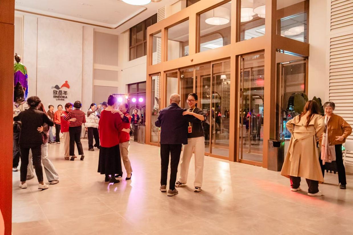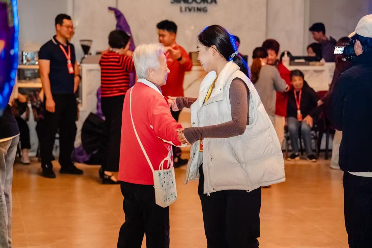 为让长者们在活动中感受舒适与愉悦,音乐与舞蹈学院师生团队在前期筹备中充分考量老年群体的身体状态与情感需求。当晚,随着《夜来香》的旋律缓缓响起,原本略带拘谨的氛围迅速被打破,几位奶奶主动跟着音乐轻晃身体,腿脚不便的爷爷坐在轮椅上用手指轻轻打拍,嘴里还念叨着 “年轻时在厂里联欢,我也跳过这支舞”;精气神十足的朱奶奶更是主动起身,一抬手、一转体,尽显当年的灵动风采。没有整齐划一的标准舞步,却有发自内心的投入与欢笑,长者们用最自然的状态,与学院师生共同编织着属于夜晚的温暖欢乐。