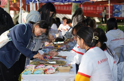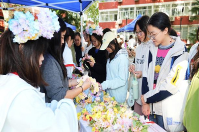 在中华民族优秀传统技艺体验区,活动融合我校专业特色和中华民族传统文化,以学生喜闻乐见的方式,设立了漆扇、簪花、水拓丝巾、中药香囊体验区和少数民族知识问答活动。从视觉观赏到动手体验,从实践操作到知识学习,全方位的体验设计,让每一位师生都能在活动中触摸民族文化,凝聚民族情感。现场人潮涌动,欢笑声、点赞声络绎不绝,氛围热烈活泼,获得了参与活动师生的一致好评。