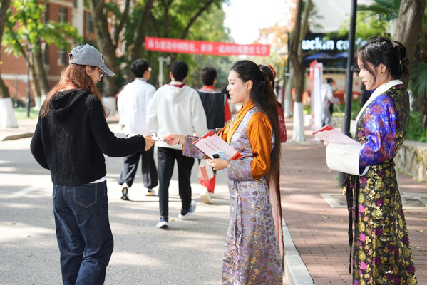 为深入学习贯彻党的二十届四中全会精神,深刻领会和把握习近平总书记关于加强和改进民族工作的重要思想,全面落实中央和省委民族工作会议精神,11月12日,我校党委统战部在学生活动广场举办2025年民族团结进步宣传月活动,党委副书记谭忠,党委常委、副校长高飞,党委常委、宣传部部长朱正东,相关职能部门负责人以及学校各民族师生代表参加活动。