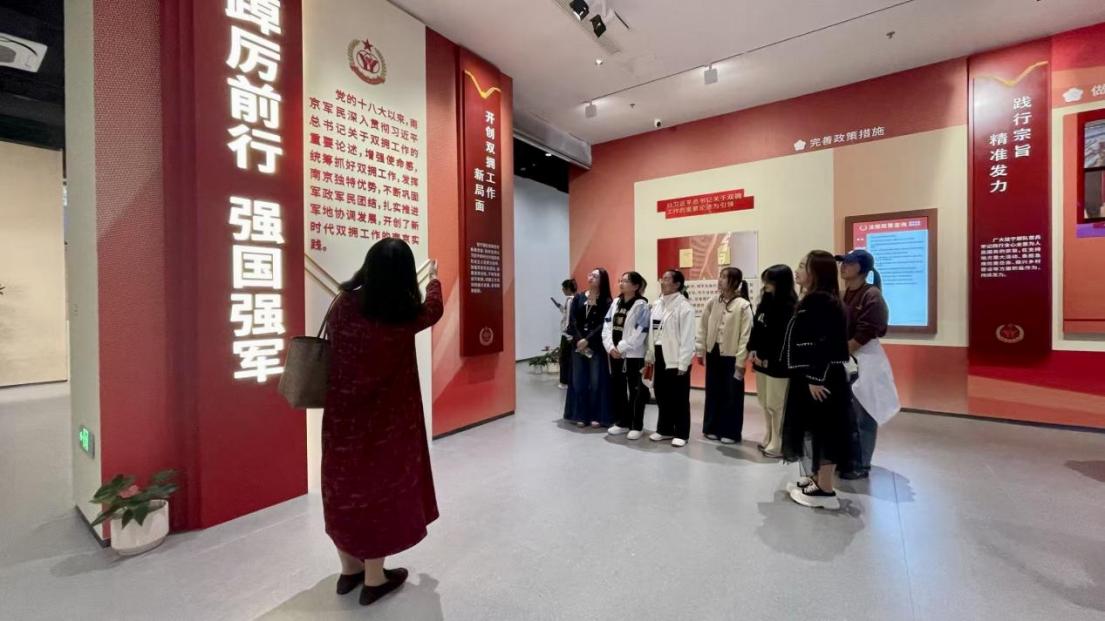 南京国防园双拥文化馆是江苏省内重要的国防教育阵地,系统收藏了新中国成立以来江苏地区军民共建的珍贵史料,包括军功章、支前模范证书、拥军担架、军民联防日志等实物,真实记录了“军爱民、民拥军”的深厚情谊。师生们在讲解员带领下,驻足凝视一件件泛黄实物,聆听背后一段段感人故事,仿佛穿越回那个军民同心、共克时艰的年代。