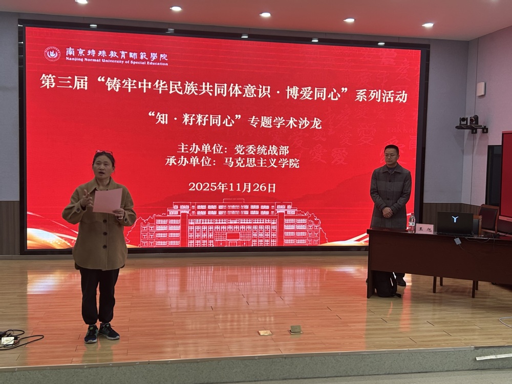 11月26日,党委统战部联合马克思主义学院举办第三届“铸牢中华民族共同体意识·博爱同心”系列活动之“知·籽籽同心”专题学术沙龙。此次讲座特别邀请扬州大学社会发展学院副教授王旭作主题交流报告。党委统战部负责人、马克思主义学院直属党支部书记、教师代表以及少数民族学生代表一同参与此次活动。