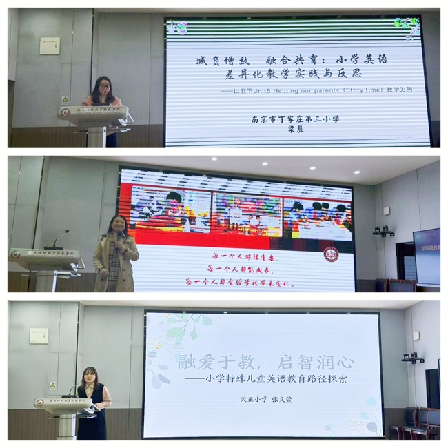 在案例分享环节,来自全市多所小学的教师代表——丁家庄第三小学梁晨、天正小学张文萱、琅琊路小学郑明慧、吴偌寒,晓庄小学文濬校区钱丽,丁家庄小学张勤锋,中电颐和家园小学苏瑾等老师,结合小学英语教学实践,分别展示了在课堂中有效支持特殊需要学生(特别是ADHD学生)的具体做法,生动诠释了“融爱于教、启智润心”的教育理念。案例分享环节结束后,会议为在融合教育实践中涌现的优秀案例举行了颁奖仪式。