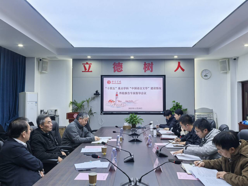 为深入推进中国语言文学学科建设,全面总结“十四五”期间学科建设成果,近日语言学院在博雅楼3501召开“中国语言文学”江苏省“十四五”重点学科专家指导会议,邀请南京大学文学院院长董晓教授、南京师范大学文学院原院长高峰教授、南京工业大学外国语学院院长陈世华教授三位专家到会指导。学校科研处(研究生处、学科建设办公室)副主任张伟锋,语言学院副院长徐琴芳、副院长刘海军以及学院教师、科研秘书等参加会议,会议由执行院长王东主持。