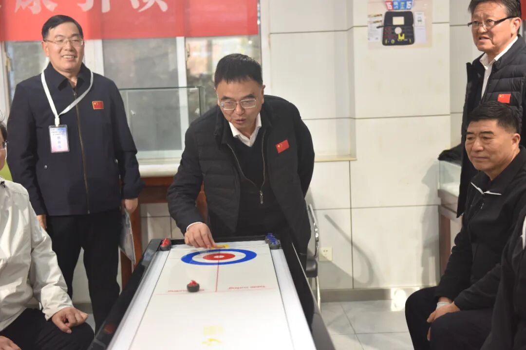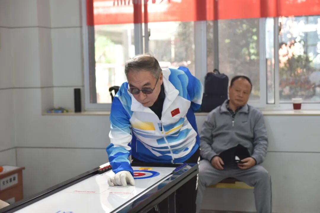 比赛现场气氛热烈而专注。选手们俯身、瞄准、推球……动作一气呵成。小小的冰壶球在平滑赛道上悄然滑行,划出决定胜负的轨迹。老同志们围坐在桌旁,低声讨论战术,用手势比画最佳路线。每一次精彩的“击打”或巧妙的“占位”,都引来阵阵喝彩。赛场上既有沉着冷静的激烈角逐,也有互帮互助、交流经验的温馨场景——当有老同志出手失误,对方队员反而主动上前,笑着分享控制力道的技巧。