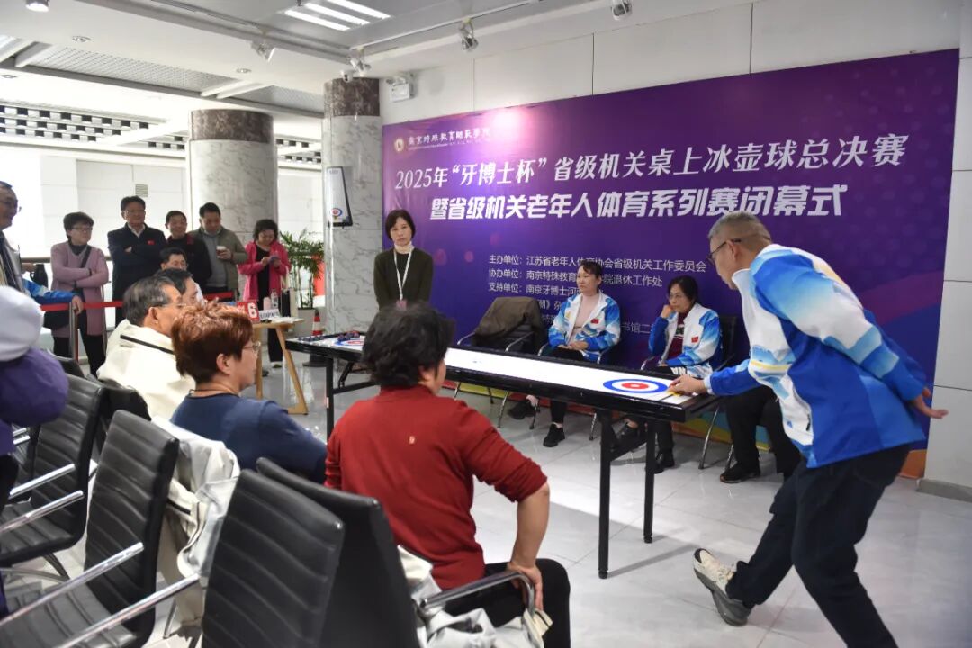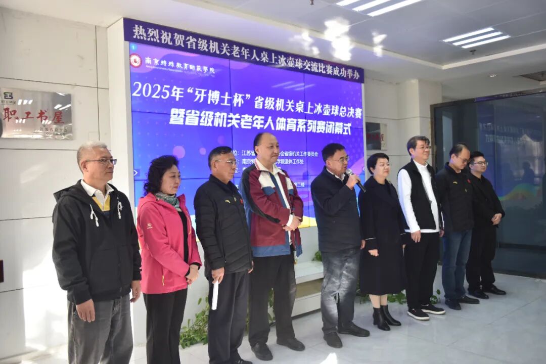 11月29日,2025年江苏省级机关桌上冰壶球总决赛暨省级机关老年人体育系列赛事闭幕式在我校举行。