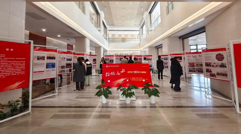 2025年是南京特殊教育师范学院本科办学十周年。12月2日,恰逢学校第四十三个校庆日,由校党委宣传部、党委办公室、档案馆共同主办的本科办学十周年回顾展在实验实训大楼一楼大厅开展,展览以“拾级而上”为主题,以时间为轴、事件为点、专题为面,通过“奋进之路”和“数说十年”两个篇章,全景呈现学校本科办学十年的发展历程、办学成果与育人成效。