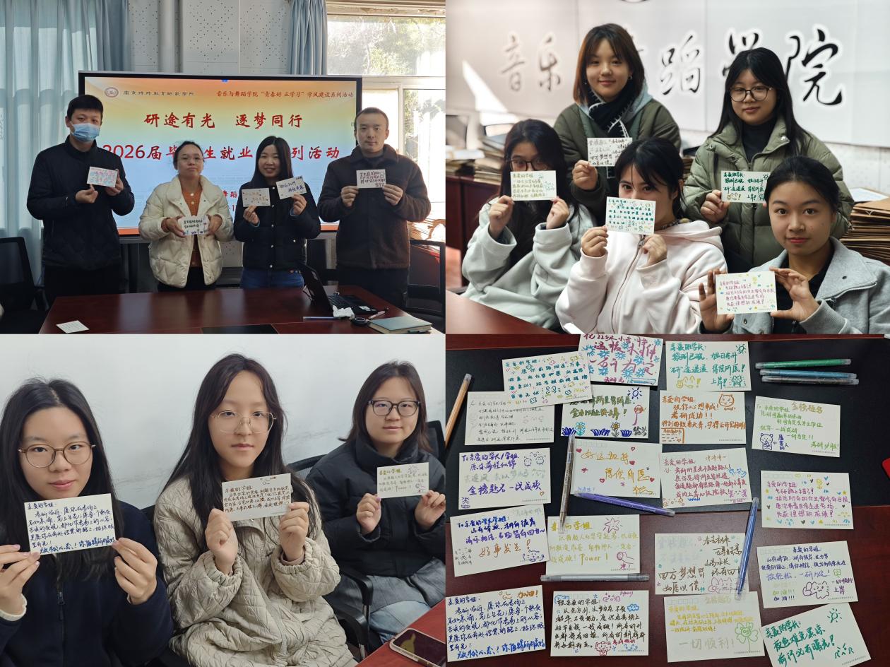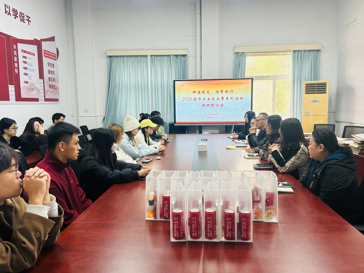 为助力2026届毕业生坚定考研信念、缓解备考压力、感受学院关怀,近日,音乐与舞蹈学院举办“研途有光,逐梦同行”系列活动之2026届毕业生考研慰问活动。学院领导班子成员、毕业班辅导员以及部分考研学生代表共同参加本次活动。