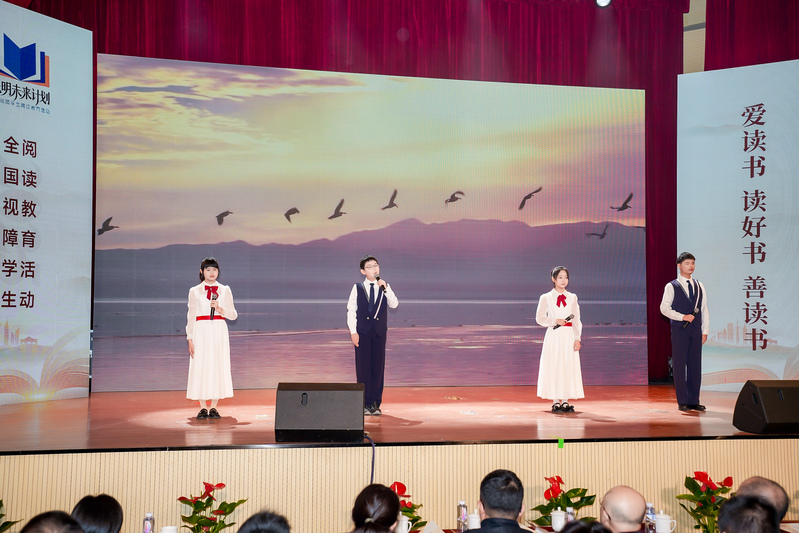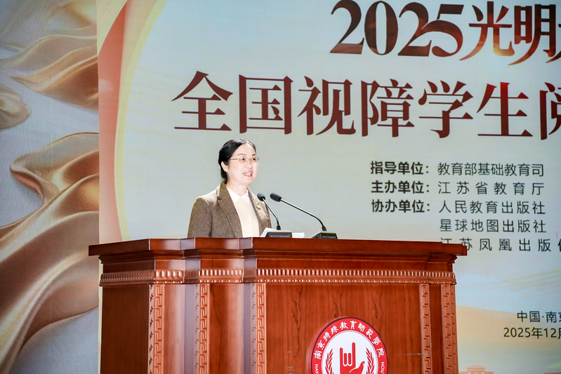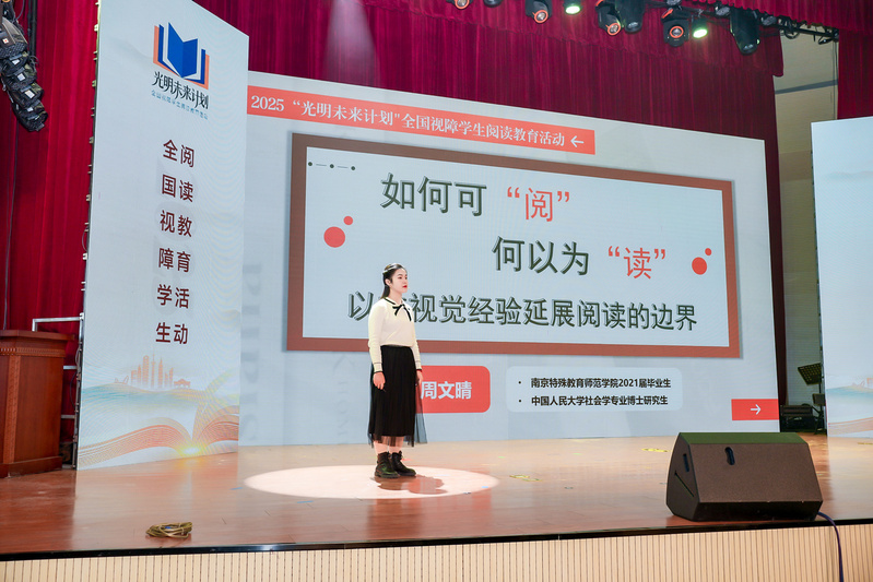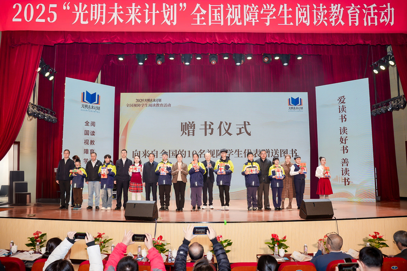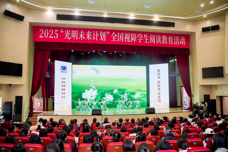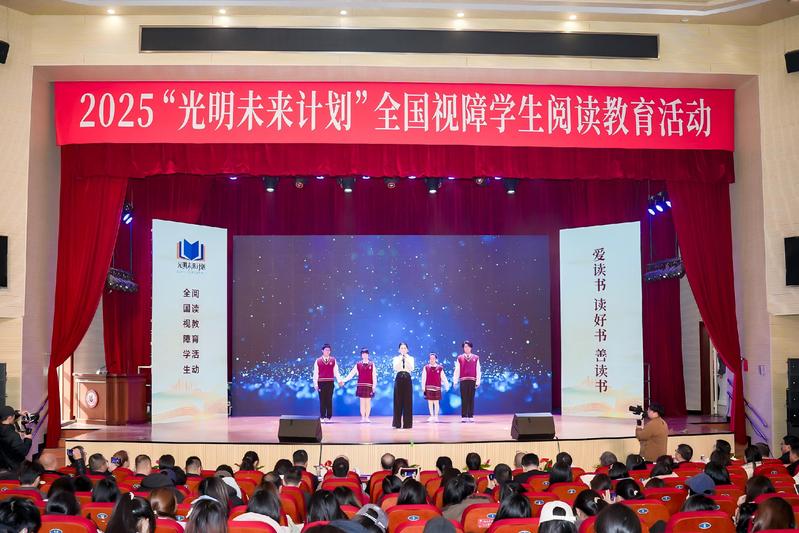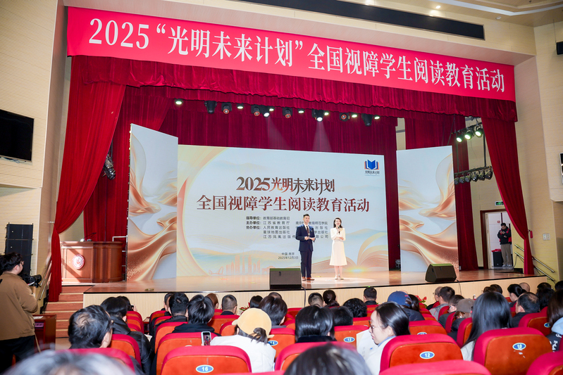 为全面贯彻党的二十大关于深化全民阅读活动的重要部署,深入实施全国青少年学生读书行动,保障视障儿童平等的阅读权益,12月3日,在第三十四个国际残疾人日来临之际,2025“光明未来计划”全国视障学生阅读教育活动在南京特殊教育师范学院举办。活动通过师生阅读分享、诵读经典、赠书仪式、发布倡议等,引导激励视障学生爱读书、读好书、善读书,营造全社会关心支持视障学生阅读教育活动的氛围。教育部基础教育司、江苏省教育厅、江苏省残疾人联合会负责同志,以及全国各地盲校代表、视障学生代表、普通学生代表、南京特殊教育学院师生等千人通过线上线下方式共同参与了本次活动。