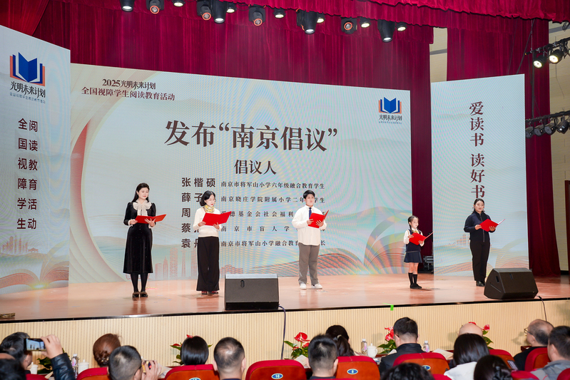 活动发布了全国视障学生阅读教育活动“南京倡议”,南京市将军山小学融合教育学生及其家长、南京晓庄学院附属小学学生、爱德基金会代表、南京市盲人学校教师共同宣读了倡议书,呼吁携手同心、各尽其力,共同营造尊重差异、包容互助的良好社会氛围,让每一位视障学子都能在书香滋养中启迪智慧、收获成长。