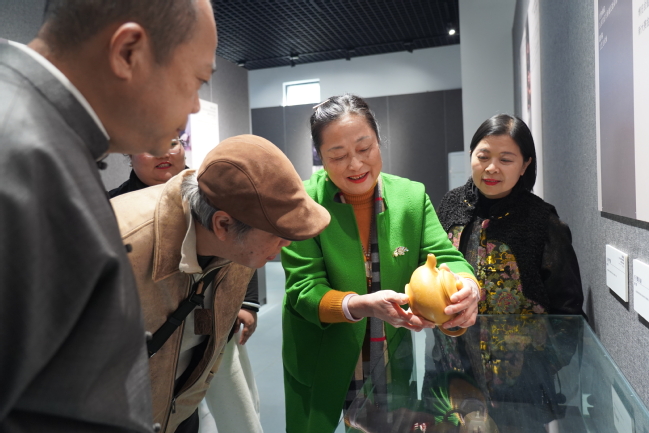 正高级工艺美术师、江苏省陶瓷艺术名人、学院客座教授陈红梅作为艺术家代表发言。她结合自身从艺与教学的双重经历,分享了紫砂创作中“师古”与“育新”的感悟。她认为,紫砂的“匠心”本质与教育所需的“爱心”“耐心”天然契合,每一件作品背后,都是技艺的传递与情感的融合。