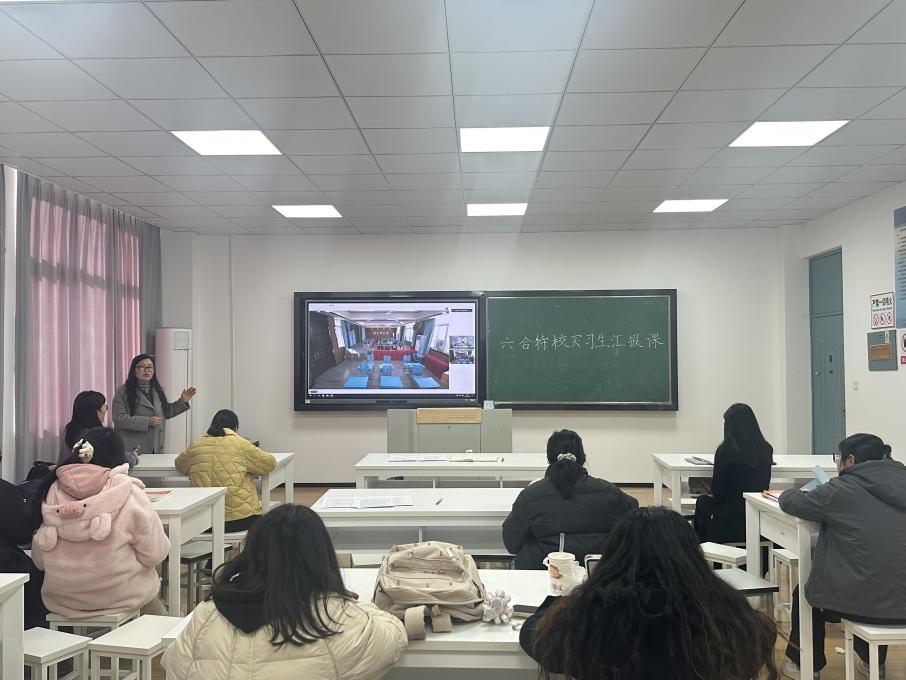 近日,一场以“立足课堂求真知,初耕特教促成长”为主题的实习生汇报课活动在南京市六合区特殊教育学校多功能教室开展。本次活动由特殊教育学院与南京市六合区特殊教育学校共同组织,特殊教育学院副院长何燕春主持,系主任李晓娟、教师李晓庆与单盛楠参与指导。学院2023级部分学生在博雅楼1405实验室同步远程观摩,实现了跨空间的教学互动与专业共研。