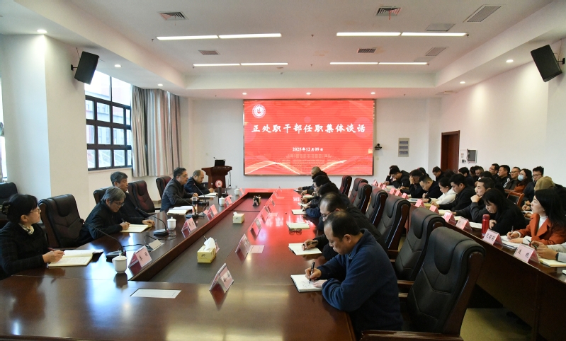 2025年12月9日下午,我校召开正处职干部任职集体谈话会。党委书记、校干部工作领导小组组长黄军伟,校党委副书记、校长王立新,党委副书记谭忠,党委常委、纪委书记、二级高级监察官于林惠,党委常委、党委组织部部长李丽出席会议。会议由校党委副书记谭忠主持。
