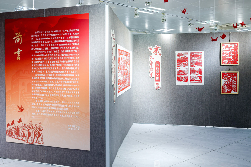 据悉,本次展览为期一周,将通过“英雄故事的深情刻画”“和平愿景的诗意呈现”“抗战精神的刚毅表达”“烽火岁月的童年记忆”“历史符号的庄严凝聚”“八十年变迁的时空对话”六个版块的诗意刻画、艺术表达,让师生在缅怀先烈中汲取奋进的精神力量。