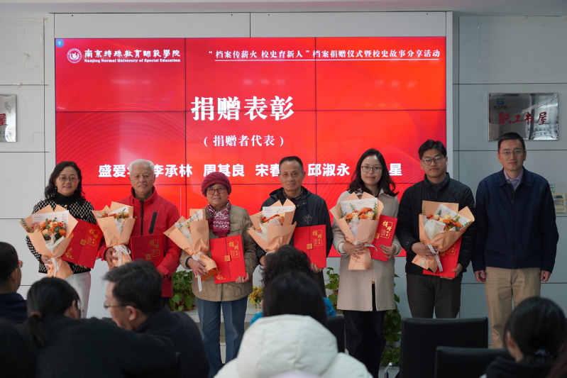 捐赠仪式在庄严温馨的氛围中拉开序幕。吴彬江副校长在致辞中强调,档案是学校历史最忠实的见证者,是文化育人的重要载体。档案捐赠者的慷慨捐赠,是对学校历史最大的珍视。档案馆要妥善保管、深入研究、充分利用这些宝贵资源,使其在存史、资政、育人中绽放新的光彩。他回顾了学校的发展历程,寄语师生从校史中汲取智慧,将个人成长融入学校与特教事业的发展洪流。