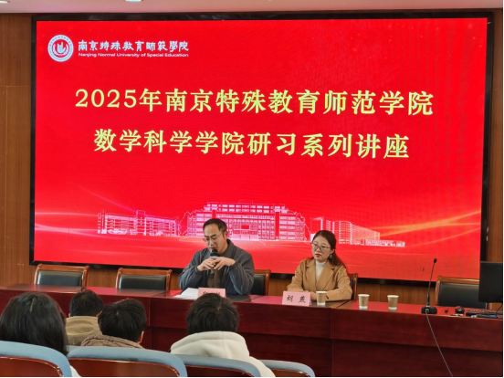 为深化师范人才培养内涵,推动教育教学理念革新,12月11日下午,数学科学学院邀请南京市栖霞区实验初级中学胡燕老师与南京东山外国语学校孙晓东老师于博韵楼114教室举办师范生研习系列专题讲座。本次讲座聚焦数学课堂设计与班级管理艺术,由数学科学学院副院长颜超主持,学院大四全体师范生参会。现场学术氛围浓厚,交流互动热烈。