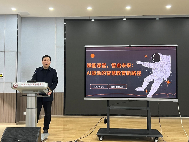 12月11日,为助力2022级学生实习后职业能力提升,人工智能学院和数学科学学院联合举办教育研习指导讲座,特邀南京市科利华中学副校长庄山担任主讲嘉宾,以“赋能课堂,智启未来:AI驱动的智慧教育新路径”为主题,分享AI时代教育变革与教师成长的实践经验。