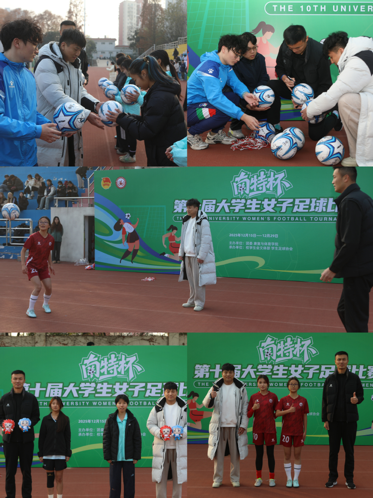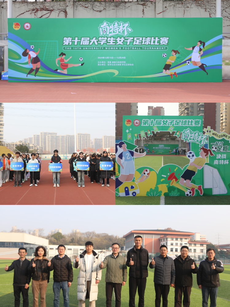 2025年12月17日下午,“南特杯”第十届大学生女子足球比赛开幕式在我校栖霞校区足球场举行。校党委常委、副校长高飞,康复与体育学院、教育科学学院、学生工作处、团委相关负责人,以及各学院师生代表共同参加。开幕式特邀“苏超”南京队球员戈伟、姚远参加现场活动,来自全校7个学院的女子足球队齐聚绿茵场,展现青春风采。