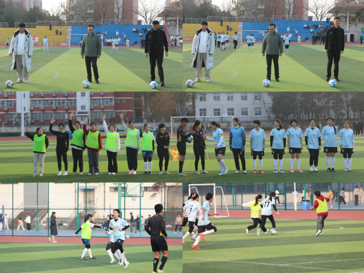 高飞副校长与两位“苏超”球员共同为比赛开球,宣告第十届“南特杯”女足比赛正式开幕。