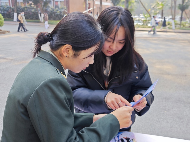 此次同步宣传活动是我校深化国防教育、推进征兵工作走深走实的具体举措。人武部采用“线上+线下”融合、“集中宣讲+个性咨询”结合的模式,确保政策宣传全覆盖、指导服务零距离。人武部将进一步优化“宣传—报名—服务—跟踪”全链条工作机制,开设线上答疑工作群,为有意向的学生提供从咨询到入伍的全程精准指导,助力更多优秀学子携笔从戎,在强国兴军的伟大征程中绽放青春光芒。(文、图/黄淇淇 邓顺和 编辑/邓顺和 审核/胡博 冷晴)