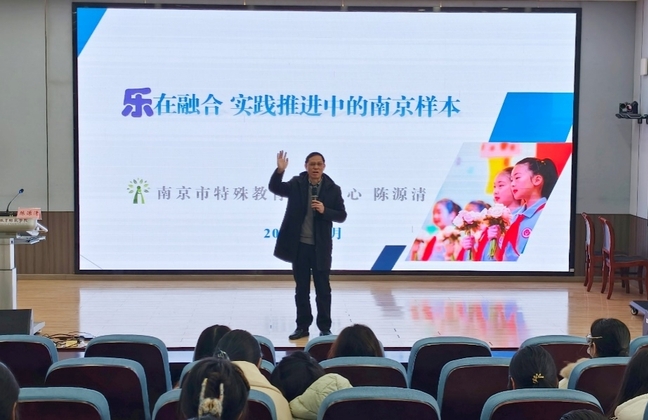 南京市特殊教育指导中心书记陈源清以“乐在融合,实践推进中的南京样本”为主题,回顾了南京市特殊教育发展历程,介绍了聋校“一主两中心”的工作定位,结合政策解读与典型案例,阐述了南京在政府统筹、师资培育等方面推进融合教育的实践模式。讲座呈现了区域融合教育发展的系统生态,为各地推进融合教育提供了可参照的“南京样本”。