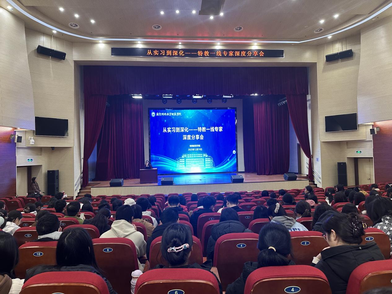 2025年12月19日,一场题为“从实习起步到专业深化——特教一线专家深度分享会”的专题讲座由特殊教育学院成功举办。活动聚焦特殊教育领域的教学设计和班级管理,深入探讨其核心方法与实施艺术,特邀南京市六合区特殊教育学校副校长梅红、栖霞区特殊教育学校副校长周蕾担任主讲。两位专家结合自身丰富的教学实践案例与班主任管理经验,为2022级学生带来了一场内容扎实、富有启发的专业分享。