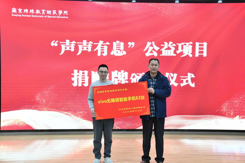 本次“声声有息”公益项目捐赠仪式,不仅是一次物质上的精准帮扶,更是社会关爱与教育温度的生动融合。未来,我校将继续携手社会各界公益力量,凝聚爱心合力,用心呵护每一位残障学子的成长梦想,助力他们以更自信的姿态融入社会,书写精彩人生。(文/庞萍 图/胡岳 编辑/宋宁宁 审核/范莉莉 冷晴)