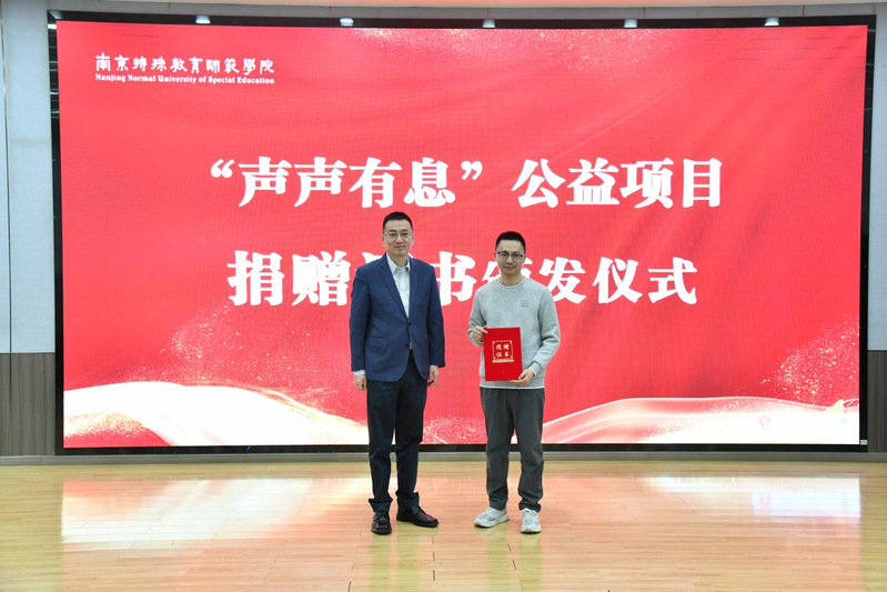 12月26日,我校举行“声声有息”公益项目捐赠仪式。校党委常委、副校长吴彬江,江苏省残疾人福利基金会项目管理与网络募捐部主任万连根,我校融合教育中心负责人、人工智能学院党总支书记、美术与设计学院党总支书记出席了本次仪式。