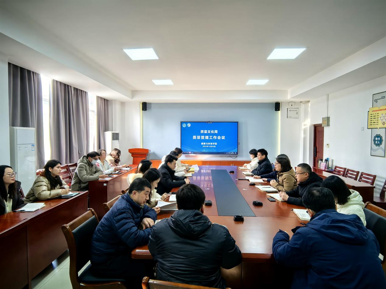 为贯彻落实学校“2025年质量文化周”活动要求,康复与体育学院于12月25日上午召开质量管理工作专题会议。学院领导班子全体成员和教学、行政、学工的管理人员齐聚一堂,聚焦期末阶段关键任务和重点工作,系统梳理工作进展,深入剖析存在问题,共商管理提质与协同增效之道,以实际行动响应和践行学校质量文化建设要求。