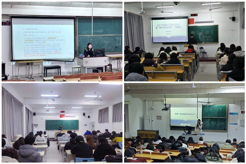 此次期末质量文化周系列活动,让勤学善思、求真务实的学风在学院蔚然成风。学院将始终秉持公平公正的原则,严格规范考试组织流程,细化监考管理要求,全力为全体学子打造一个纪律严明、秩序井然的考试环境。(文/周美含 图/各班级 编辑/朱思橙 宋宁宁 审核/丁雯 冷晴)