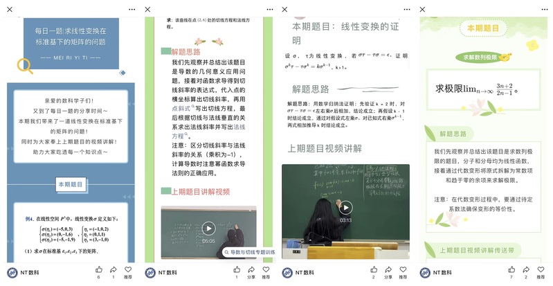 学院依托官方公众号平台,通过“每日一题”攻坚专栏,聚焦数学分析、高等代数这些核心课程的重难点题型,由经验丰富的讲题人逐题深入拆解解题思路,细致传授破题技巧与解题妙招,帮助同学们厘清知识脉络、扫清知识盲区,有效积累实用解题方法。与此同时,各学科教师主动跟进同学们的复习进度,通过线上答疑群、线下辅导等多种方式,及时为大家解答复习过程中遇到的疑难问题,耐心点拨思路、梳理考点,鼓励全院学子调整心态、夯实基础,以从容自信的姿态迎战期末。