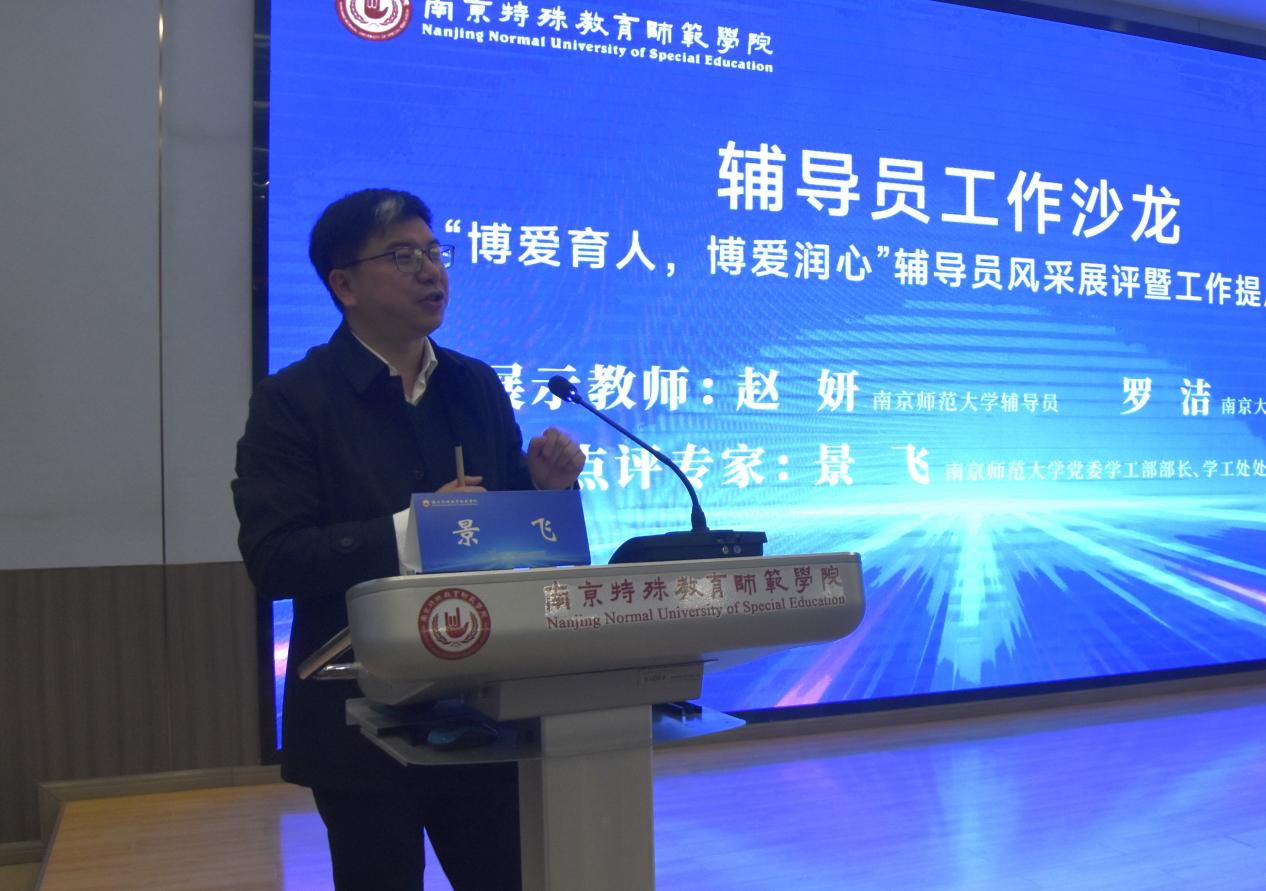南京师范大学党委学工部(处)长景飞主持 “博爱育人,博爱润心” 辅导员风采展评暨工作提质沙龙。沙龙紧扣发展型资助工作创新、资助育人案例分享核心主题,特别邀请南京大学优秀辅导员罗洁、南京师范大学优秀辅导员赵妍,以“一比一还原汇报答辩” 的形式,原汁原味呈现团干工作、党建引领、社会实践、日常育人及 “最美辅导员” 成长等方面的实战经验,为参训人员搭建了沉浸式学习、深层次交流的思想碰撞平台。