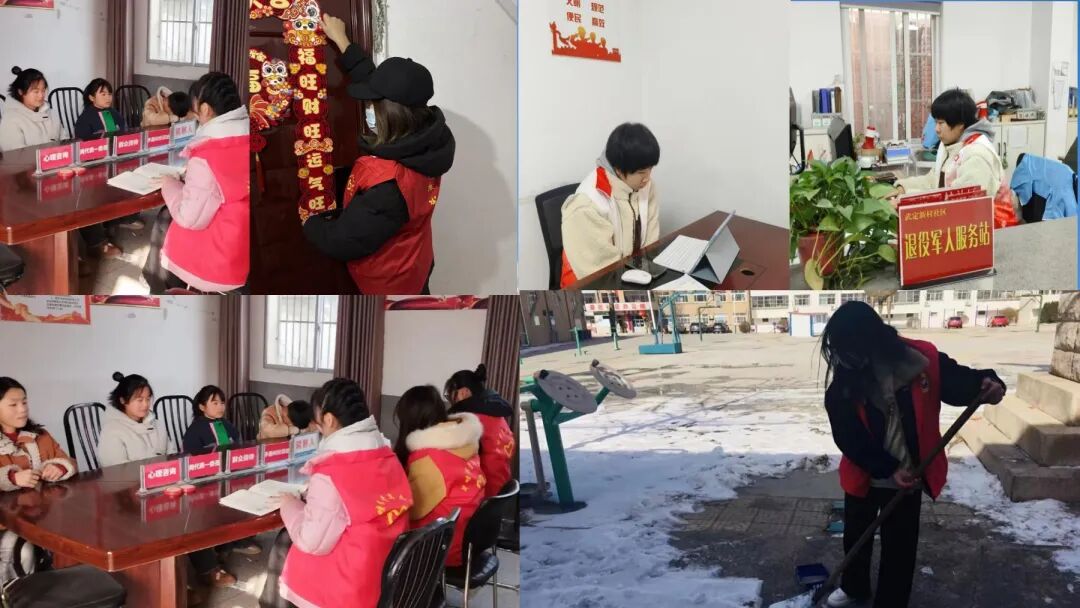 有的志愿者走村入户,以张贴海报、发放手册、现场讲解等多样形式,深入解读惠民政策,广泛科普反诈知识,为乡村振兴与文化传承贡献力量;有的精心策划“迎新春・暖社区”系列活动,引导社区儿童化身“环保小卫士”,积极宣传垃圾分类知识,同时开设独居老人智能手机教学小课堂,用心拉近与老幼群体的心灵距离;有的顶风冒雪参与除雪志愿服务,守护居民出行安全;有的在当地图书馆化身图书志愿者,熟练完成图书整理、借还指引工作;还有的志愿者在医院康复中心参与肌肉放松手法实操、肌力评估等临床工作,实现从理论知识到临床实操的跨越,感悟医者守护健康的责任……
