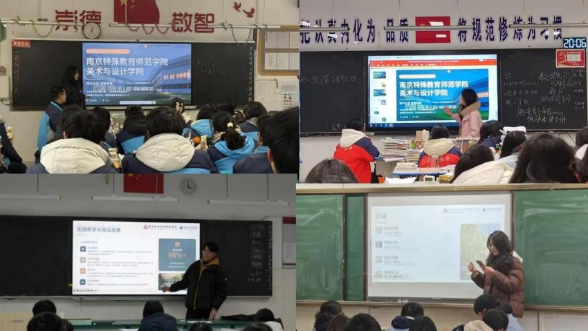 美术与设计学院“艺光传承”宣传队的学子们重返母校,开启招生宣讲实践活动,足迹遍布江苏省内多所高中。