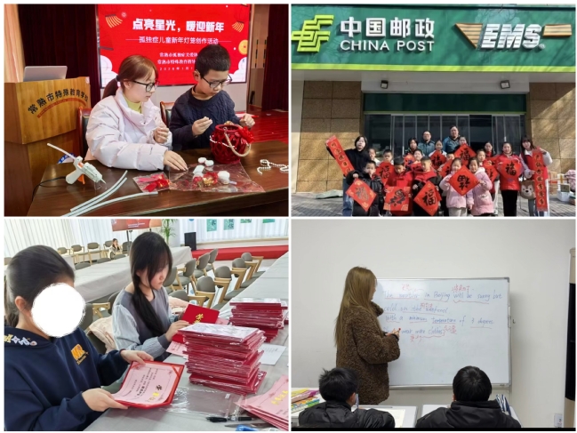 暖心陪伴,用爱守护成长。学子们走进特殊教育学校,陪伴孤独症儿童创作灯笼、绘画手工,化身暖心助教耐心引导;同时发挥语言专业优势,开设线上趣味课堂,让知识与温暖双向传递。在社区公益托管、家乡亲子阅读、义务课业辅导中,志愿者们陪伴孩子阅读绘本、书写春联、梳理知识、趣味互动,用陪伴点亮童年,以细致传递温情。