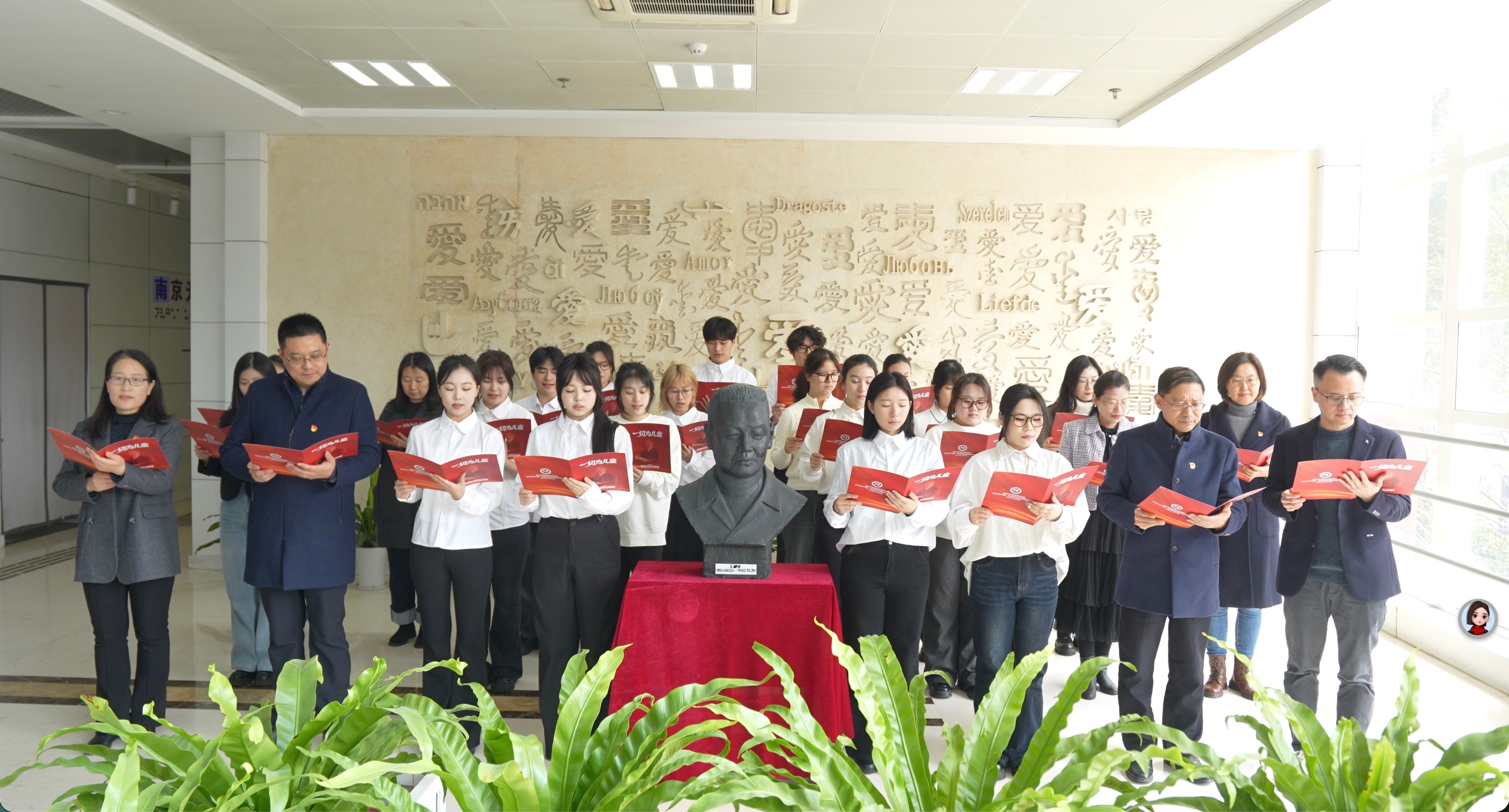 活动现场,师生环绕陈鹤琴先生雕像肃立,在百爱墙的温情氛围中齐声诵读经典,重温先生“一切为儿童”“让每一位残障儿童享有到人类应有的幸福”的宏愿与教诲。琅琅书声里,先贤教育思想跨越时空、直抵人心,彰显出南京特师对特殊教育事业的赤诚坚守。