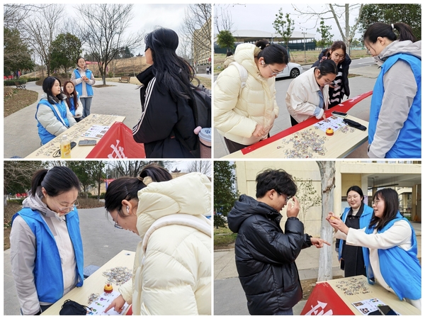 在江宁校区活动现场,两大趣味互动游戏吸引了同学们的踊跃参与。“声音连连看”摊位前,大家在趣味挑战中轻松掌握不同声音的分贝范围。另一边的“蒙眼猜方位”游戏则让大家在全新体验中,深刻体会到听力对感知世界的重要意义。