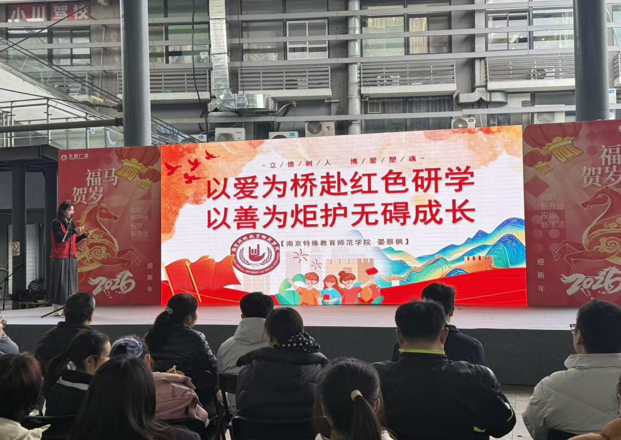 近日,马克思主义学院“博爱优学”红色研学志愿服务团队亮相江宁区“党员为宁宣讲·情暖元宵学雷锋”路演展示现场,向江宁区委宣传部领导及各界嘉宾展示了南特学子以专业赋能特殊教育、以红色精神铸魂育人的志愿服务成果。该项目着力推动特殊教育和融合教育大中小学思政一体化建设,为特殊儿童打造专属红色教育路径,为江宁区红色教育与志愿服务事业注入青春动能。