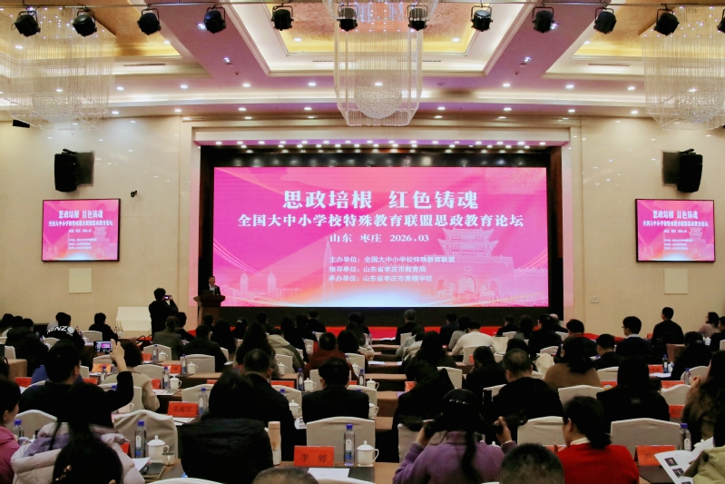 3月6日至8日,由南京特师牵头成立并担任理事长单位的全国大中小学校特殊教育联盟,在山东枣庄举办思政教育论坛。本次论坛以“思政培根,红色铸魂”为主题,紧扣特殊教育领域思政教育一体化建设核心议题,既是我校贯彻落实党的二十大“强化特殊教育普惠发展”战略部署的具体行动,也是对标《教育强国建设规划纲要(2024—2035 年)》要求、践行特教育人使命的重要实践。论坛吸引了全国23个省市260余位特教领域领导、专家与一线教师齐聚一堂,共话新时代特殊教育思政教育高质量发展路径。