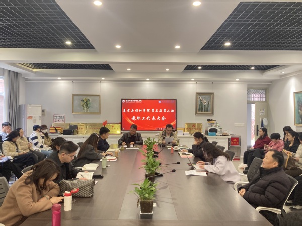 按照学校统一部署,在校工会及学院党总支的统筹领导下,2026年3月11日下午,美术与设计学院(阳光学院)第三届第二次教职工代表大会在博韵楼109会议室召开。学院教职工代表齐聚一堂,共商学院发展大计,会议由学院党总支书记陶刚主持。