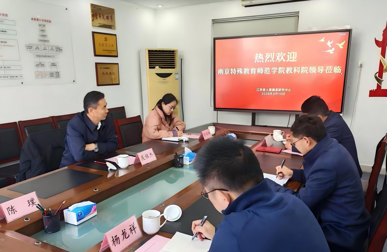 为深化校地协同,推动特殊儿童康复教育高质量发展,加强“双师双能型” 教师队伍建设,2026年3月10日上午,教育科学学院选派专业骨干教师吕艺征赴江苏省儿童康复研究中心附属幼儿园挂职,教科院党总支书记杨龙祥、院长刘新学带队送岗并共商深化合作事宜。活动由省儿童康复研究中心党支部副书记张稚琳主持,江苏省残联党组成员、副理事长庆祖杰出席。