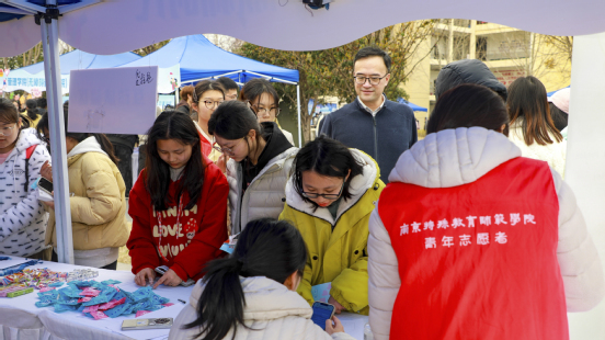 为深入学习贯彻党的二十届四中全会和习近平总书记致中国志愿服务联合会第三届会员代表大会贺信精神,弘扬“奉献、友爱、互助、进步”的志愿精神,推进学校实践育人工作走深走实,3月11日,“博爱·青益汇”志愿服务集市暨2026年志愿服务月启动仪式在我校江宁校区举行。