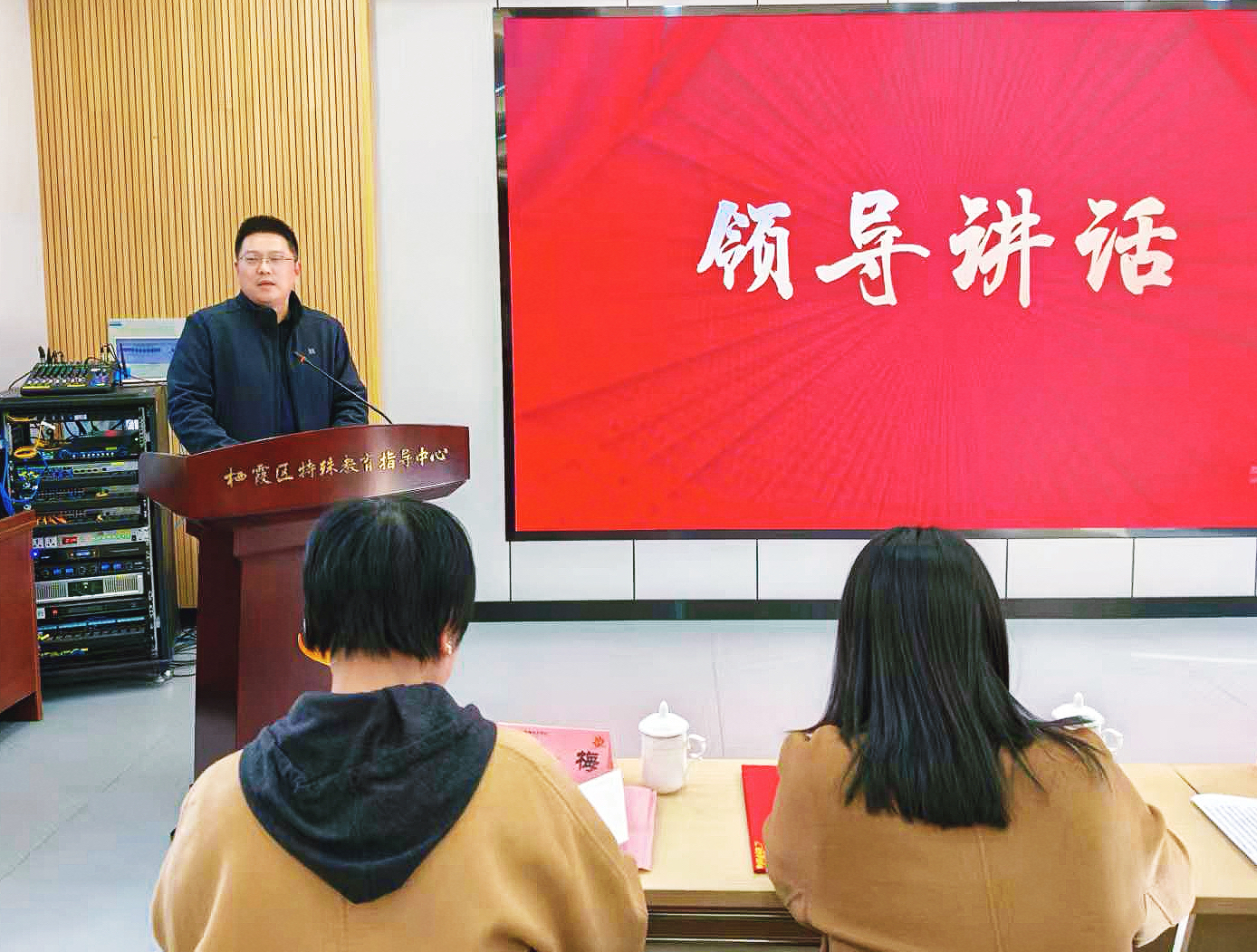 季瑾老师作表态发言,表示将不负学院和栖霞特校的信任,脚踏实地、虚心学习,快速适应岗位、融入学校各项工作,并紧密结合栖霞特校的发展需求,充分发挥自身专业特长,积极探索融合教育实践创新路径,力争在挂职岗位上取得实效,为特需儿童的成长贡献自己的力量。