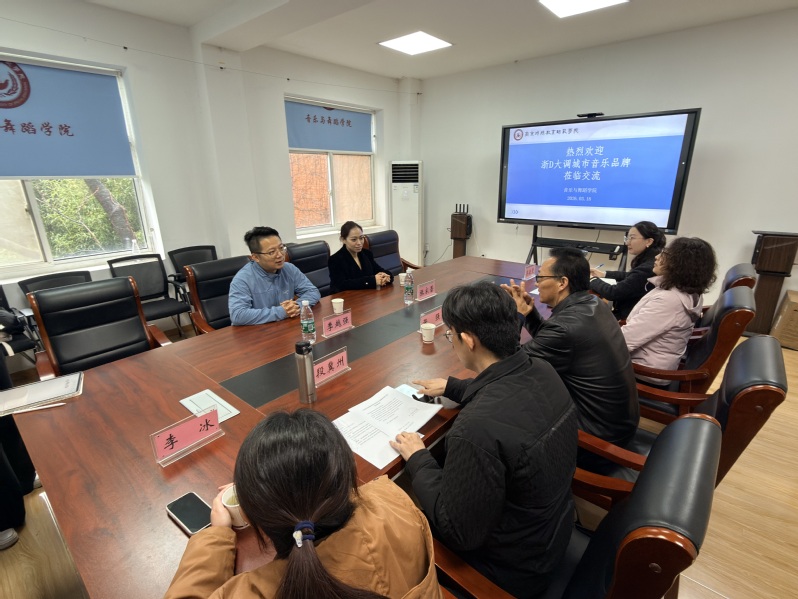 为深化产教融合、推动音乐治疗与特殊教育的创新发展,2026年3月18日,浙D大调城市音乐品牌企业创始人季越强、青年钢琴演奏家张家蕾到访音舞学院交流。音舞学院相关系室主任和骨干教师参会,双方围绕专业品牌建设、音乐治疗实践、科技赋能康复等议题深入研讨,达成多项合作共识。