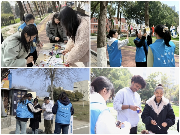 栖霞校区的林荫大道间,一场以“两只不一样的袜子”为主题的创意活动顺利开展。志愿者们向来往师生发放唐氏综合征科普宣传单页,讲解唐氏综合征相关知识。同学们在袜子上勾勒牵手相伴的剪影,写下每一种不同都值得被爱的温情话语,让每一双不对称的袜子都成为独一无二的作品。