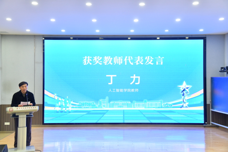 获奖学生代表、语言学院王艺敏和获奖教师代表、人工智能学院丁力老师先后发言,分享创作心路与育人故事。